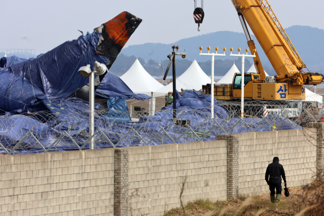 전남 무안공항에서 합동조사단 관계자가 현장 주변을 수색하고 있다. 연합뉴스