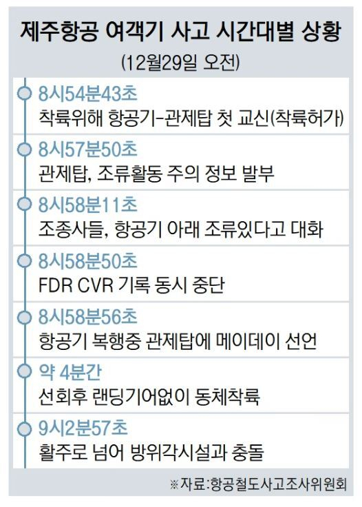 지난해 12월 29일 발생한 제주항공 여객기 참사는 여객기가 로컬라이저(방위각시설)에 충돌하기 4분 7초 전부터 블랙박스 기록이 중단된 것으로 나타났다.