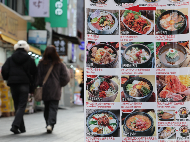부산 지역 주요 외식 메뉴 가운데 지난 10년간 김밥과 칼국수 가격이 상대적으로 크게 오른 것으로 나타났다. 지난달 15일 서울 중구 명동 음식점 앞 메뉴판. 연합뉴스
