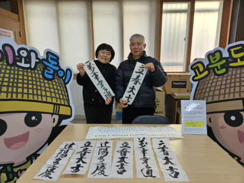 이날 행사는 올해 을사년 봄을 맞아 가정에 좋은 일이 가득하길 바라는 마음에서 서예동아리 ‘고분도리 묵향’ 수강생들의 재능기부를 통해 마련했다.
