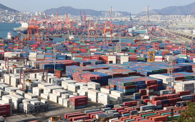 도널드 트럼프 미국 대통령이 캐나다, 멕시코, 중국에 대한 관세 부과로 한국도 트럼프 '관세 전쟁'의 영향권에 있다는 우려가 가시화하고 있다. 사진은 3일 오전 부산항 신선대·감만·신감만부두에 수출입 화물이 쌓여있는 모습. 연합뉴스