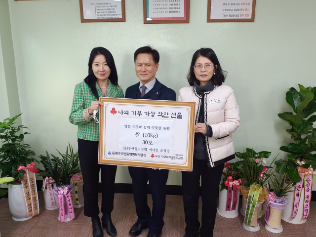 부산성의신협 동래지점(이사장 윤석영)은 최근 동래구 수민동(동장 정영미)에 취약계층을 위한 쌀 10kg 30포를 전달했다.