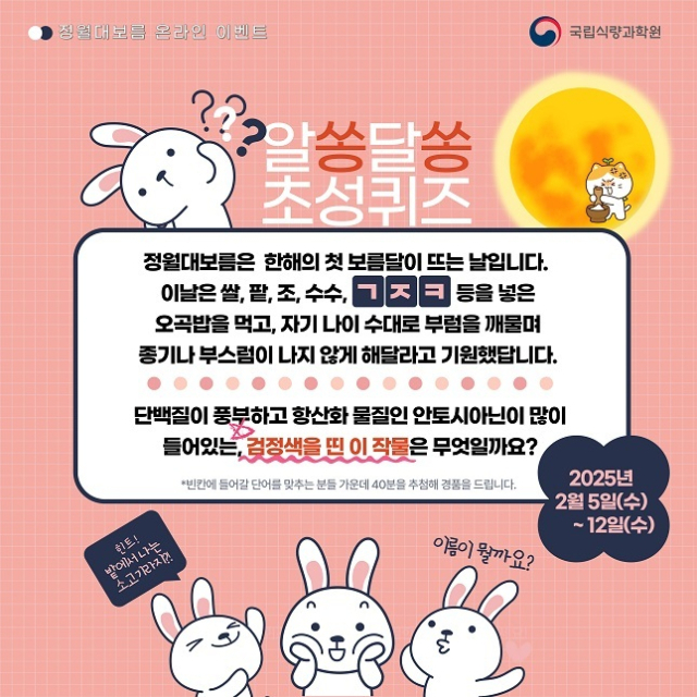 농촌진흥청, 2월 12일 정월대보름 맞이 온라인 퀴즈 행사