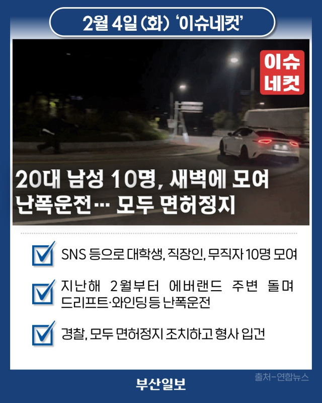 20대 남성 10명, 새벽에 모여 난폭운전… 모두 면허정지 [이슈네컷]