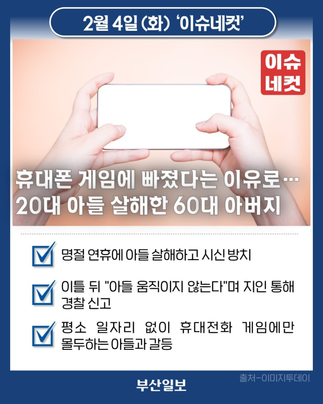 휴대폰 게임에 빠졌다는 이유로… 20대 아들 살해한 60대 아버지