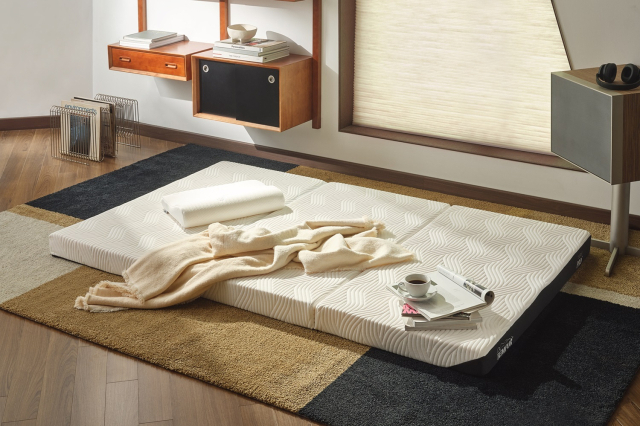 이번 신제품은 집 공간 활용도를 높이고 싶은 20~30대 1인 가구용이나 손님이 왔을 때 쉽게 활용할 수 있는 용도로 개발된 접이식 매트리스다. 쉽게 접었다 펼 수 있어 소규모 원룸이나 자취방에서 사용하기 적합하며 온돌 난방을 한 바닥에서 손님용 서브 매트리스로 활용할 수 있다. 사용하지 않을 때는 3단으로 접어 함께 제공되는 보관용 가방에 넣어 간편하게 수납할 수 있다.