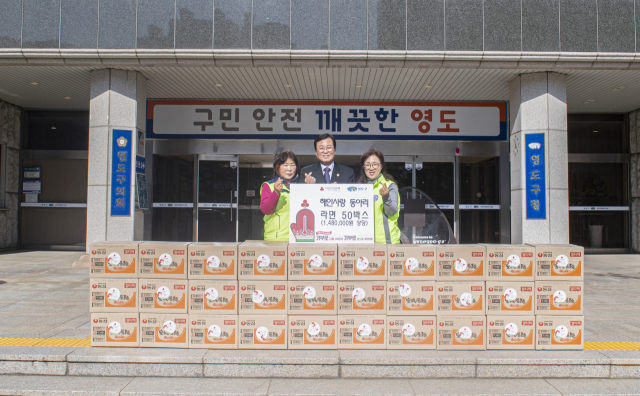한국해양대학교 해인사랑 동아리(회장 조두녀)는 지난 5일 영도구청을 방문해 이웃돕기 성품 라면 50박스(148만 원 상당)를 전달했다.