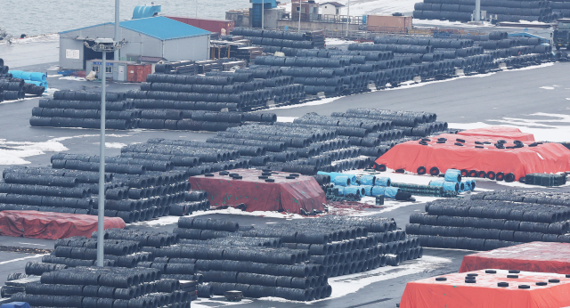 도널드 트럼프 미국 대통령이 오는 10일(현지시간) 미국으로 수입되는 모든 철강과 알루미늄 제품에 대한 25% 관세 부과를 발표할 계획이다. 트럼프 대통령은 9일 미국프로풋볼 결승전인 슈퍼볼이 열리는 뉴올리언스로 이동하는 전용기 안에서 기자들에게 이 같은 계획을 공개했다고 로이터와 AP통신 등이 보도했다. 트럼프 대통령은 "미국으로 들어오는 어느 철강이든 25% 관세를 부과받게 될 것"이라고 말했다. 사진은 10일 경기도 평택항에 쌓여 있는 철강 제품 모습. 연합뉴스