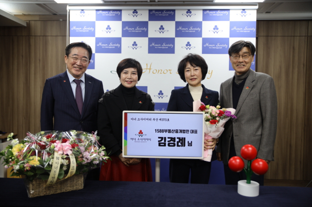 이날 가입식에는 기부자인 1588부동산중개법인 김경례 대표와 부산사랑의열매 이수태 회장, 부산 아너 소사이어티 클럽 정성우 회장, 부산 W아너 소사이어티 변희자 회장, 1588부동산중개법인 이정미 이사가 참석했다.