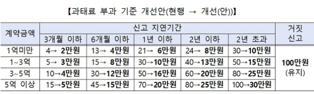 이에 따라 국토부는 이번 시행령 개정을 통해 단순히 지연 신고한 경우에는 과태료 상한액을 최대 30만원으로 낮추고, 거짓 신고한 경우에는 현행 과태료 부과 기준인 100만원을 그대로 유지하는 제도개선을 추진한다.