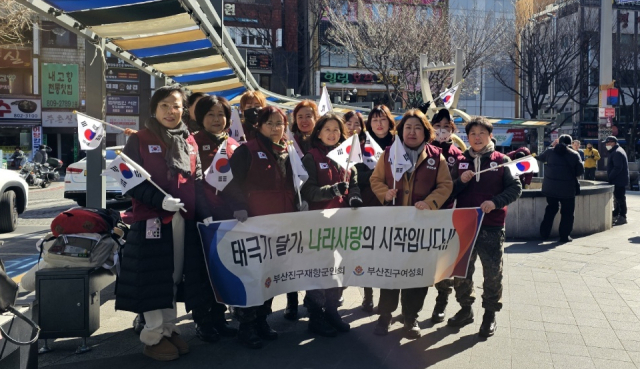 부산 부산진구 재향군인회(회장노재현)는 18일 106주년 3·1절 앞두고 전 국민 태극기 달기운동 현수막 설치와 서면 일대에서 거리 홍보를 벌였다.
