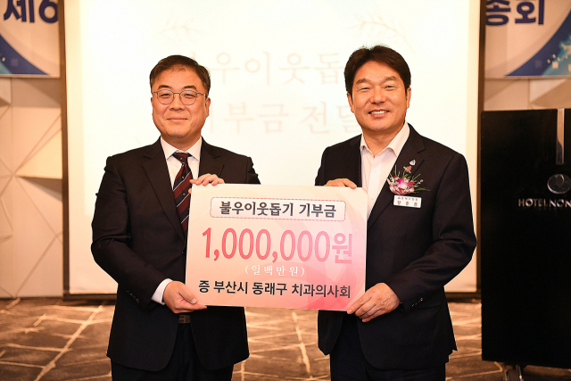 부산 동래구(구청장 장준용)는 지난 17일 동래구 치과의사회 제62차 정기총회에서 동래구 치과의사회(회장 정영교)로부터 이웃돕기 성금 100만 원을 기탁받았다고 밝혔다.