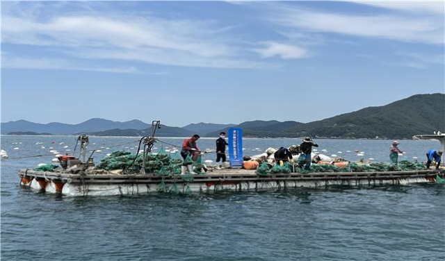 굴 산란장 조성을 위한 어미 굴 수하 모습(통영). 국립수산과학원 제공