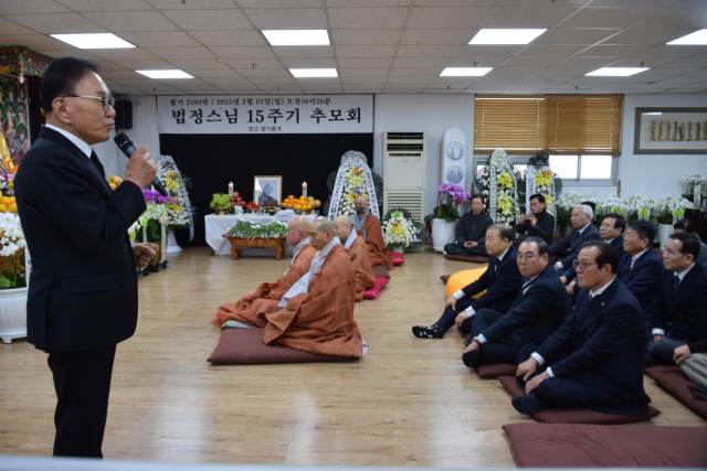 성주사 조실 흥교 대종사는 “스님께서는 한국불교의 큰 기둥이셨던 효봉 큰스님을 은사로 모시며 그 가르침을 오롯이 이어 불교의 가치를 이 시대에 전하신 스승”이라며 “법정스님의 가르침은 자리이타의 부처님 가르침을 현대인에게 전하는 아름다운 실천으로 오늘날 법정스님의 가르침을 더 깊이 새겨야 할 것”이라고 추모했다.