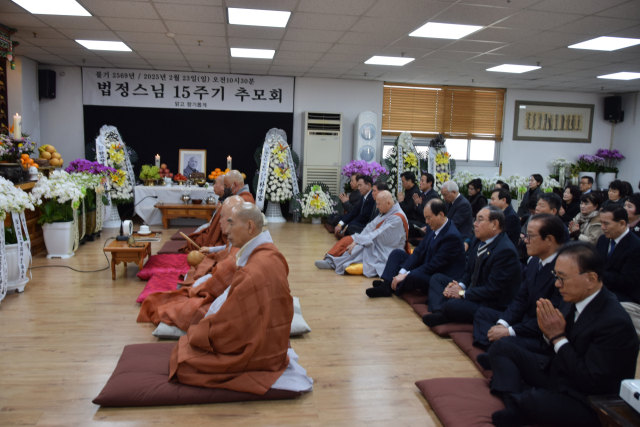 맑고향기롭게 부산모임(회장 박수관)은 23일 부산 서면에 위치한 맑고향기롭게 부산모임 법당에서 ‘법정 스님 15주기 추모회’를 봉행했다.