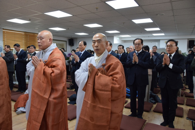사시예불에 이어진 추모회는 삼귀의례, 반야심경 봉독, 헌화, 추모 영상, 흥교 스님 인사말, 내빈 소개, 사홍서원 등으로 진행됐다.
