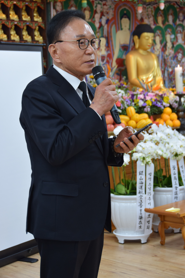 박수관 맑고향기롭게 부산모임 회장은 “우리 사회가 견디기 힘들고 갈등이 커질 때마다 큰스님께서 살아계셨더라면 어떤 가르침을 주셨을까 돌아보게 된다”며 “오늘 추모의 시간을 통해 큰스님께서 당부해주신 무소유, 맑은 가난의 가르침을 새기며 서로 조금씩 더 배려하고 나만이 아닌 주위를 돌아보는 따뜻한 사회가 되길 바란다”고 당부했다. 이어 “법정스님의 청아하고 맑은 가르침이 맑고 향기롭게 부산모임을 통해 이어지는 것에 대해 감사드린다”고 덧붙였다.