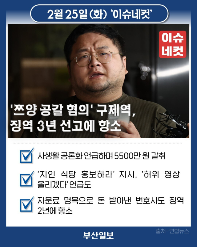 '쯔양 공갈 혐의' 구제역, 징역 3년 선고에 항소 [이슈네컷]