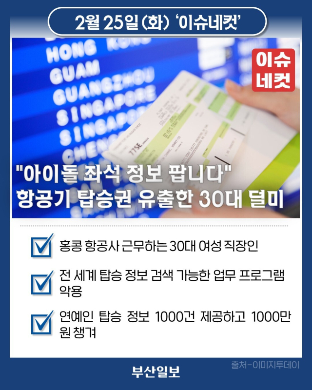 "아이돌 좌석 정보 팝니다" 항공기 탑승권 유출한 30대 덜미