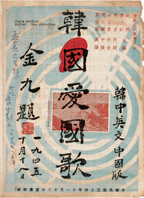 백범 김구의 친필이 적힌 한국애국가 악보. 국립대한민국임시정부기념관 제공