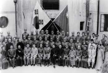 1940년 9월 17일 중국 충칭의 가릉빈관에서 한국광복군 총사령부 성립 전례식이 열리고 있다. 독립기념관 제공