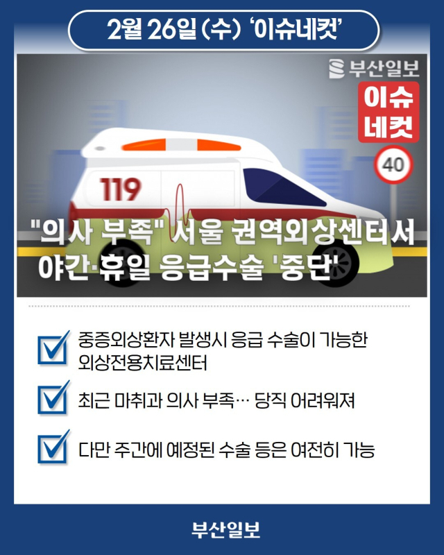 "의사 부족" 서울 권역외상센터서 야간·휴일 응급수술 '중단'