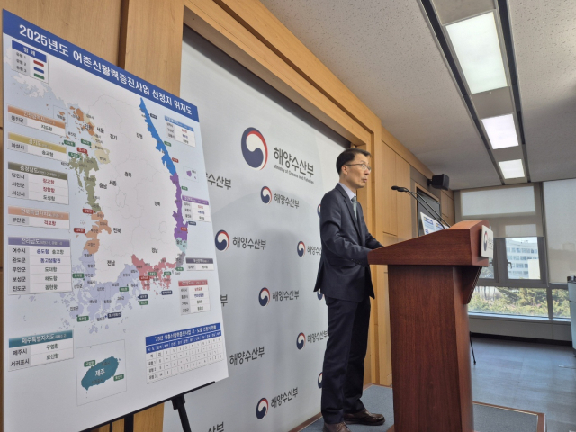 해양수산부 서정호 어촌양식정책관이 26일 정부세종청사 해수부 기자실에서 ‘2025년도 어촌신활력증진 사업’ 대상지 선정 결과에 대한 브리핑을 하고 있다. 해수부 제공