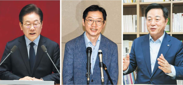 더불어민주당 대권주자들이 잇달아 부산과 울산, 경남을 찾는다. 왼쪽부터 이재명 대표, 김경수 전 경남지사, 김두관 전 의원. 연합뉴스