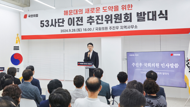 국민의힘 주진우(부산 해운대갑) 의원이 지난해 9월 28일 부산 해운대구 지역 사무소에서 ‘53사단 이전 추진위원회’ 발대식을 개최했다. 주 의원실 제공