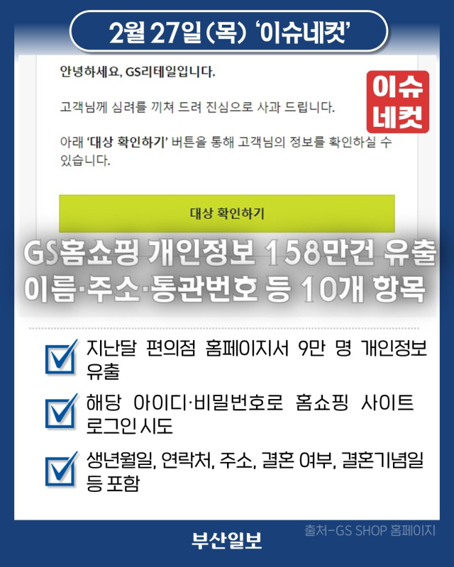 GS홈쇼핑서 개인정보 158만 건 유출… 이름·주소·통관번호 등 10개 항목 [이슈네컷]