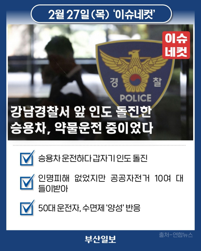 강남경찰서 앞 인도 돌진한 승용차, 약물운전 중이었다