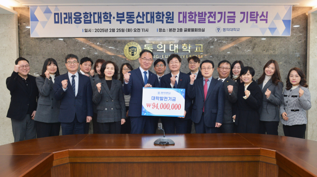 동의대 미래융합대학과 부동산대학원(학장 겸 원장 정쾌호) 동문들이 대학 발전과 후배들 지원을 위해 대학 발전기금 9400만 원을 기탁했다.