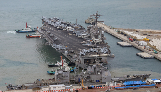 [포토뉴스] 핵 항공모함 '칼빈슨함' 부산 입항