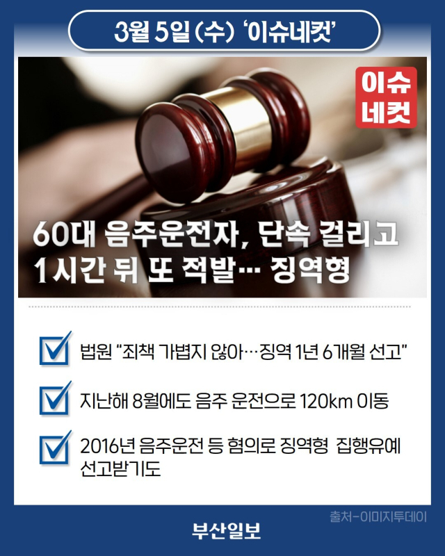 60대 음주운전자, 단속 걸리고 1시간 뒤 또 적발… 징역형