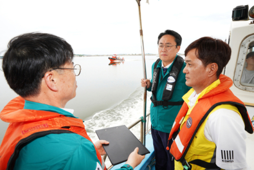 강도형 해양수산부 장관이 지난해 6월 천수만 가두리 양식장 고수온 현장점검을 하고 있다. 해수부 제공
