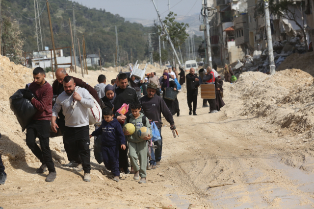 5일(현지 시간) 가자지구에 이스라엘의 대피령이 떨어지자 주민들이 피난길에 오르고 있다. 신화연합뉴스