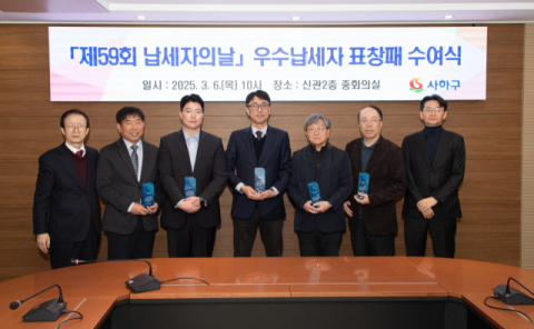부산 사하구(구청장 이갑준)는 6일 ‘제59회 납세자의 날’을 맞아 ‘2025년 사하구 우수납세자 표창패 수여식’을 개최하고, 어려운 경제 여건 속에서도 성실하게 납부한 우수납세자에게 감사의 마음을 전했다.