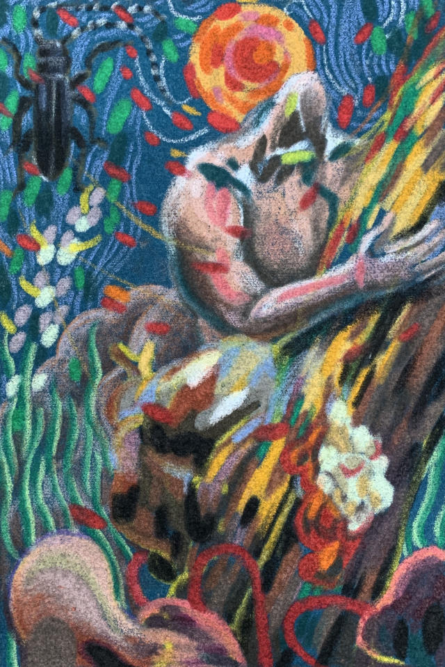 배규무 작가는 생명체들 간의 생존과 상호작용을 탐구하는 작업을 선보였다. 예전 초등학교 교실 게시판으로 사용했던 펠트 천에 오일 파스텔로 강렬한 이미지를 그린다. 식물, 사람, 벌레가 주로 등장해 서로 상처주고 회복하며 살아가는 메시지를 담고 있다. 크레용 같은 질감의 오일파스텔이 펠트에 스며들지 않고 쌓이는 특성이 있어 기존 캔버스 그림과 확연히 다른 매력이 있다.