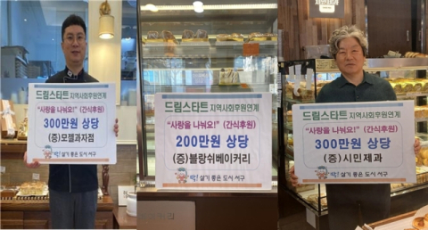 부산 서구(구청장 공한수)는 올 3월부터 서구 관내 모젤과자점, 블랑쉬베이커리, 시민제과 등 지역사회의 후원을 받아 드림스타트 가정 아동을 위한 간식을 전달하는 ‘사랑을 나눠요’ 사업을 실시한다고 밝혔다. 이번 사업은 취약계층 가구의 경제적 부담을 감소시키고 아동의 건강한 성장 발달 도모에 도움을 주고자 마련됐다.