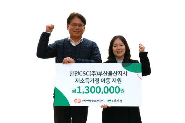 초록우산(부산지역본부장 이수경)은 한전CSC(주)(부산울산지사장 안성민)가 초록우산에 플리마켓 수익금 130만 원을 기부했다고 밝혔다.