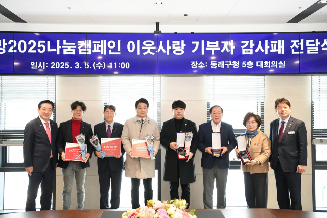 부산 동래구(구청장 장준용)는 지난 5일 부산사회복지공동모금회(회장 이수태)와 희망2025나눔캠페인 이웃사랑 실천 기부자 감사패 전달식을 열었다.
