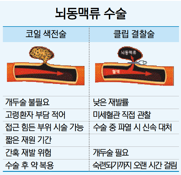 이현곤 과장은 “두 방법 중 어느 쪽이 낫다고 할 수 없다. 환자의 컨디션과 동맥류의 상태 등을 모두 종합적으로 고려하여 최적의 방법을 선택하는 것이 좋다”고 지적했다.