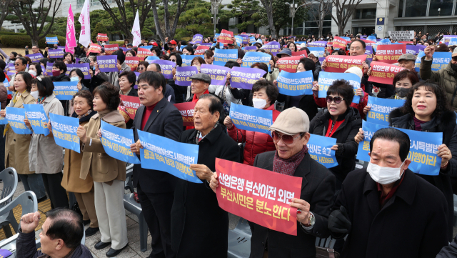 글로벌허브도시 범시민 추진위원회를 비롯한 부산 지역 시민사회단체 회원들이 10일 오후 부산시청 광장에서 글로벌허브도시 특별법 제정과 산업은행 부산 이전을 촉구하는 집회를 열었다.