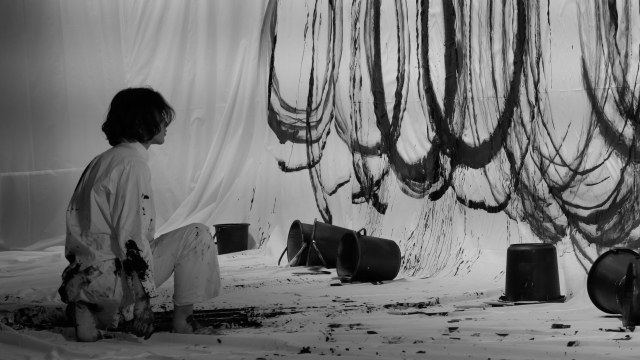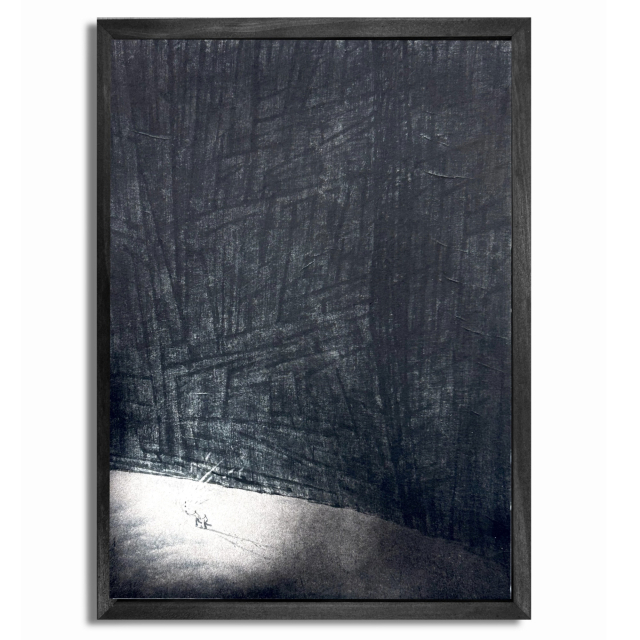 지난해 개인전과 아트페어의 성공과 별도로 작가 개인에게는 아프고 힘든 시기가 있었다고 한다. 밤처럼 어두운 풍경, 낭떠러지에 선 인간 등의 표현은 아마도 이 시기에 나온 것 같다. 작가는 그림이 있어 그 시기를 버틸 수 있었고, 작가이기에 아픔 역시 고스란히 작품에 드러날 수밖에 없다고 말한다. 1.5m, 2m의 대형 작품부터 10cm의 작은 작품들은 각각 흑백영화의 한 장면처럼 많은 이야기를 담고 있는 것 같다.