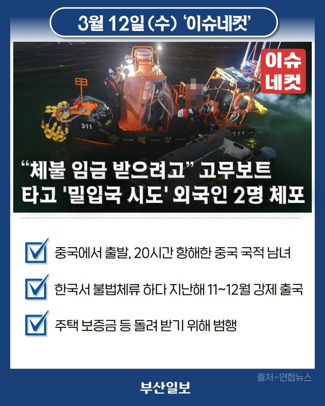 "체불 임금 받으려고" 고무보트 20시간 타고 '밀입국 시도' 외국인 2명 체포