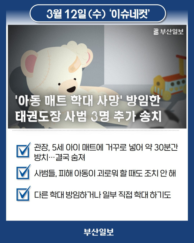 '아동 매트 학대 사망' 방임한 태권도장 사범 3명 추가 송치 [이슈네컷]
