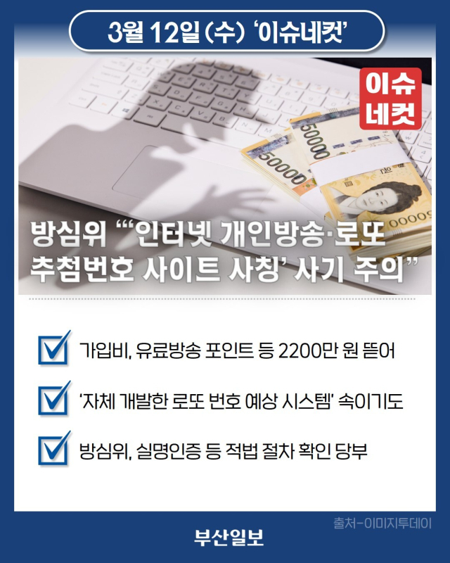"2200만 원 가로채" 인터넷 개인방송·로또 추첨번호 사이트 '사칭 사기' 주의