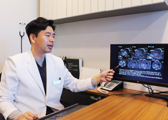 케이엠동물건강검진센터 김현수 센터장이 보호자에게 검진 결과를 설명하고 있다. 케이엠동물건강검진 제공