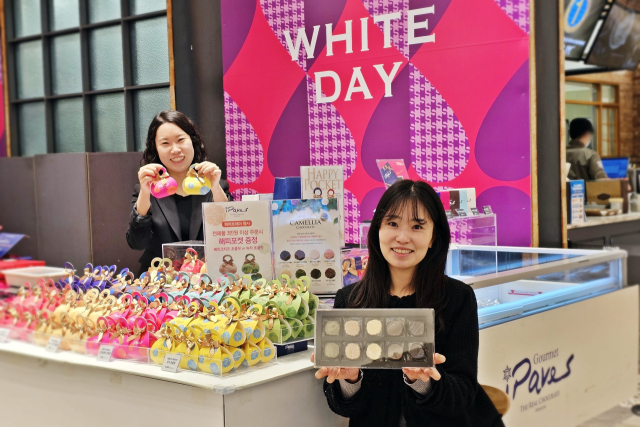 신세계 센텀시티는 화이트데이인 14일까지 백화점 지하 식품관에서 ‘아이파베스’ 팝업을 열고 동백꽃 초콜릿을 선보인다. 동백꽃 초콜릿은 마카다미아 등 8가지 맛으로 구성돼 있다. 신세계 센텀시티 제공