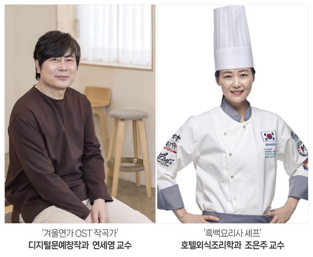 이번 학기에 합류한 교수진은 넷플릭스 요리 예능 ‘흑백요리사’에 출연해 방송 팬들에게 잘 알려진 조은주 교수와 ‘데이드림’이라는 예명으로 음악·문학·미술 등 다방면에서 활약하는 연세영 교수다.